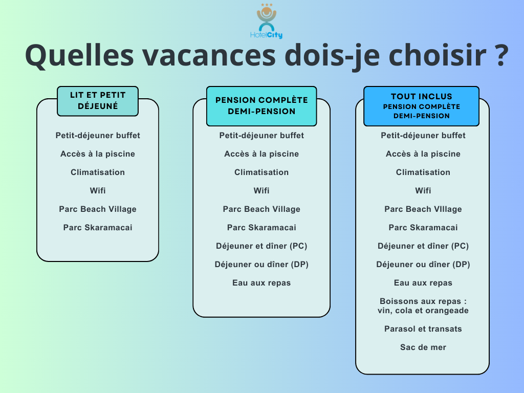 • Les repas non consommés à l’hôtel ne seront pas déduits du prix de la pension complète
